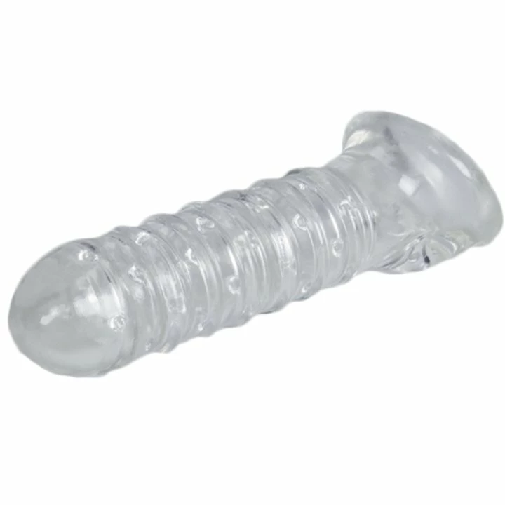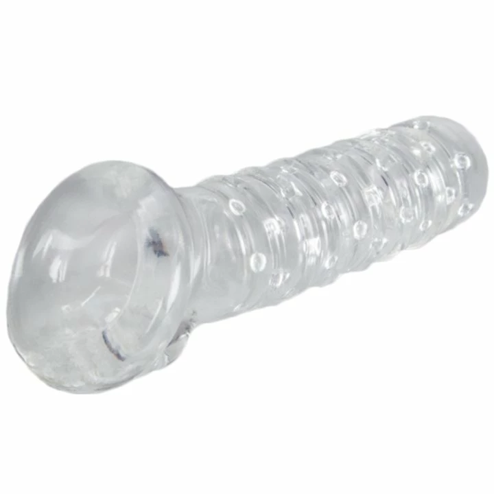 Dress for the occasion with the Bondara Clear Textured Cock Sleeve with Ball Strap. Supporting your erection for improved performance, the sleeve helps you last for longer while also enhancing pleasure. Feel the internal nodules as they rub against your cock, while the external ridges will feel incredible for your partner. For your complete confidence, the ball strap keeps the sleeve securely in place.Β