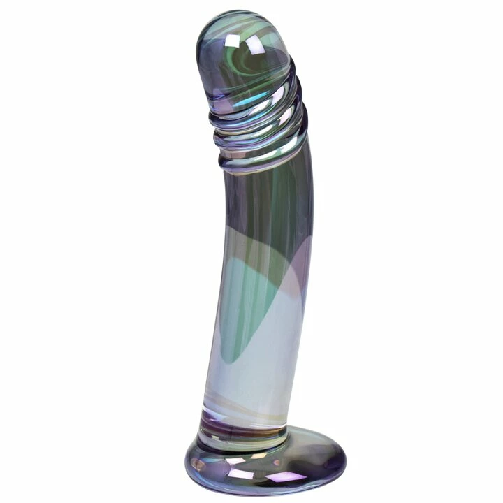 Standing proudly with a beautiful, holographic design, the Glacier Glass Aura Realistic Dildo by Bondara wonβt go unnoticed in your toy box. Let its perfectly sculpted body tease and tantalise as the rounded head and ridges stimulate your sweet spots. The flared base not only lets you stand the dildo upright, it also acts as a comfortable handle for soft, smooth strokes.