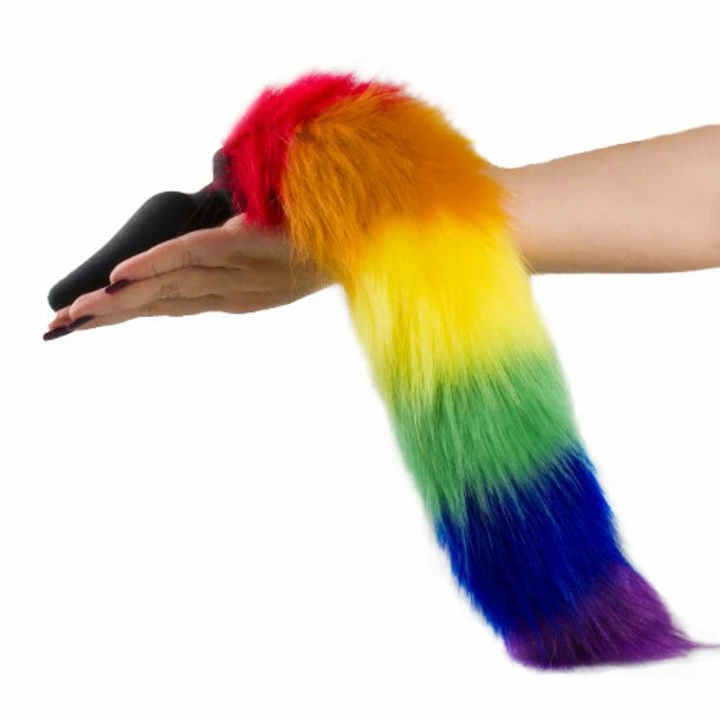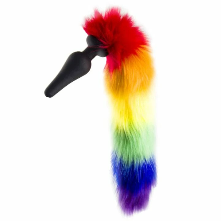 Make your backside bright with the Kinky Tails Faux Fur Rainbow Tail Butt Plug. The 4.5 inch butt plug features a slim body and a tapered shape for more comfortable insertion, while the narrow neck is finished with a flared base for safe play.Β